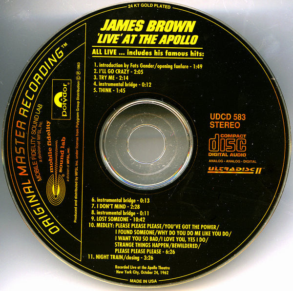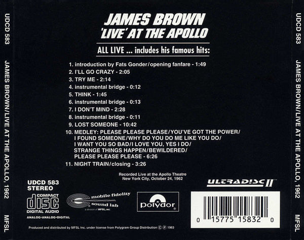 Recorded live at the Apollo Theater, New York City, October 24, 1962. Comes with Ultradisc II paper outer wrap with track listing and details of other releases.