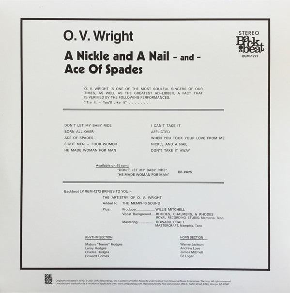 O.V. Wright : A Nickel & A Nail & The Ace Of Spades (LP, Album, RE)