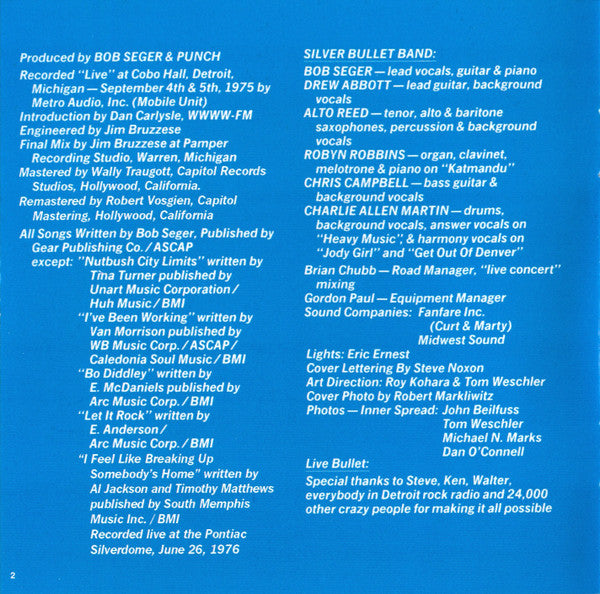 Tracks 1-14 recorded "Live" at Cobo Hall Detroit MI on September 4 & 5 1975. Track 15 recorded live at the Pontiac Silverdome Pontiac MI June 26 1976.
