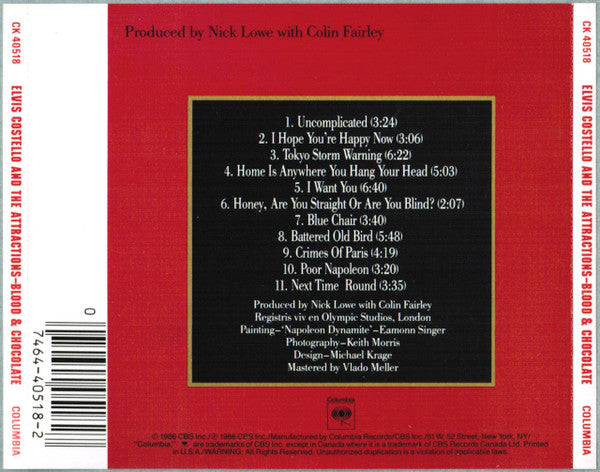 © 1986 CBS Inc./℗ 1986 Inc./Manufactured by Columbia Records/CBS Inc./51 W.52 Street, New York, NY / "Columbia"