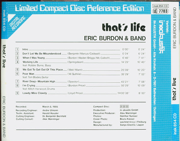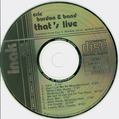 Eric Burdon & Band : That's Live (CD, Album, Ltd)