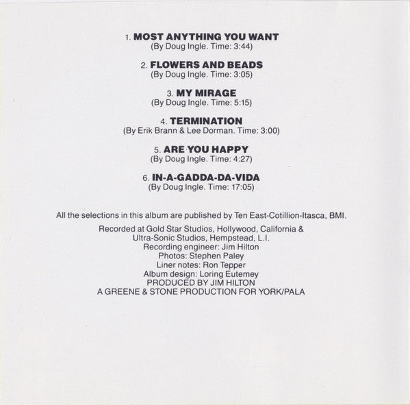 Issued in a standard jewel case with a black tray and 4-page, single-fold booklet Nowhere on the release does it state the year of CD reissue. The absence of SID codes indicate that it was released before 1994. [Booklet All the selections in this album are published by Ten East-Cotillion-Itasca, BMI. Recorded at Gold Star Studios, Hollywood, California & Ultra-Sonic Studios, Hempstead, L.I. © 1968 Atlantic Recording Corporation. Printed in U.S.A. [Back A Greene & Stone Production for York/Pala Atco Records Division of Atlantic Recording Corporation A Warner Communications Company © 1968 Atlantic Recording Corporation. Printed in U.S.A. [Disc A Warner Communications Company A Greene & Stone Production for York/Pala © 1968 Atlantic Recording Corporation. Printed in U.S.A. Made in U.S.A. by WEA Manufacturing Inc.