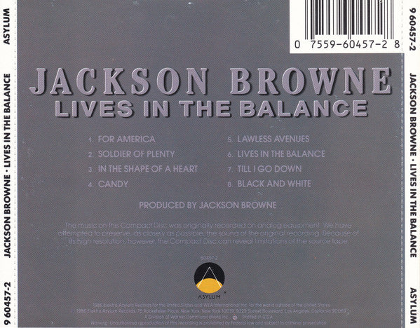Jackson Browne : Lives In The Balance (CD, Album, RE, SRC)