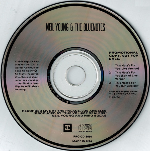 Promotional copy including live version of "This Note's For You" recorded live at The Palace in Los Angeles on April 13, 1988.