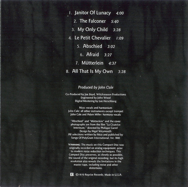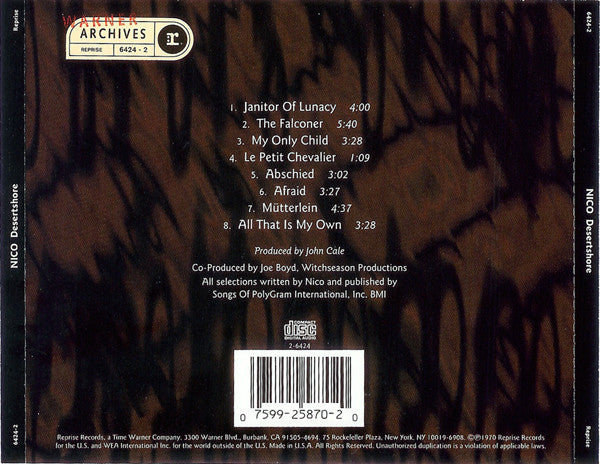 CD reissue of the 1970 LP. Jewel case with white inner tray. ©&℗1970 Reprise Records for the U.S. and WEA International Inc. for the world outside the U.S. Made in U.S.A.