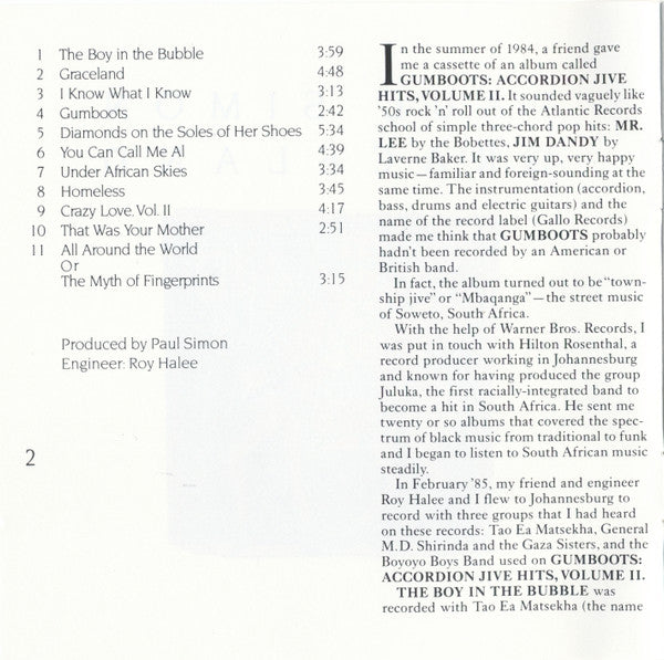 Ⓟ 1986 Paul Simon. All Rights Reserved.
