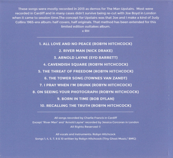 Limited edition of 1000 copies issued in a 4-panel clear tray digipak. The release was available through the artist's Bandcamp page. All songs recorded in Cardiff except "River Man" and "Arnold Layne" recorded by in London. All rights reserved ©