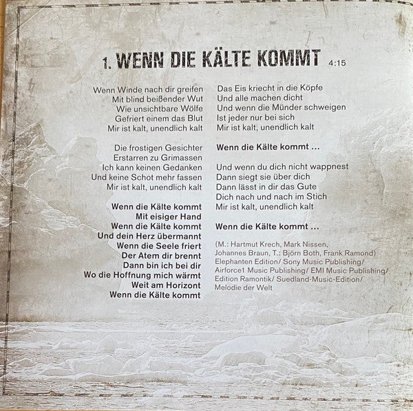 ℗ 2021 Santiano GbR, under exclusive license to Universal Music GmbH © 2021 Universal Music GmbH Made in the EU Publishers: Track 1: Elephanten Edition / Sony Music Publishing / Airforce1 Music Publishing / EMI Music Publishing / Edition Ramontik / Suedland-Music-Edition / Melodie der Welt Tracks 2, 5, 9: Elephanten Edition / Sony Music Publishing / Airforce 1 Music Publishing / EMI Music Publishing / BMG Rights Management Tracks 3, 7, 10, 11, 13: Elephanten Edition / Sony Music Publishing / Airforce1 Music Publishing / EMI Music Publishing / BMG Rights Management / Suedland-Music-Edition / Melodie der Welt Tracks 4, 6: Elephanten Edition / Sony Music Publishing / Airforce 1 Music Publishing / EMI Music Publishing / Edition Ramontik Track 8: Elephanten Edition / Sony Music Publishing / Airforce 1 Music Publishing / EMI Music Publishing Track 12: Elephanten Edition / Sony Music Publishing / Airforce 1 Music Publishing / EMI Music Publishing / Edition Ramontik / Suedland-Music-Edition / Melodie der Welt / BMG Rights Management Track 14: Elephanten Edition / Sony Music Publishing / EMI Music Publishing / Airforce 1 Music Publishing / Sony Music Publishing UK