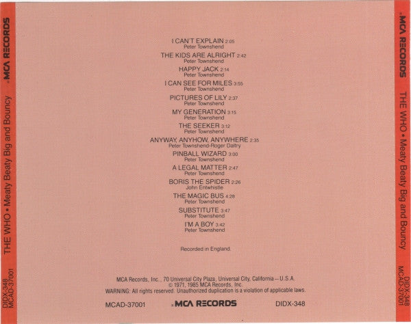 Recorded in England. Manufactured in Japan for MCA Records, Inc. © 1971, 1985 MCA Records, Inc.