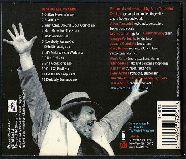 Produced & Arranged By Allen Toussaint for Sansu Enterprises, Inc. Series produced by Joel Dorn for The Masked Announcer. © 2001 Label M A division of PDSE Records, Inc.