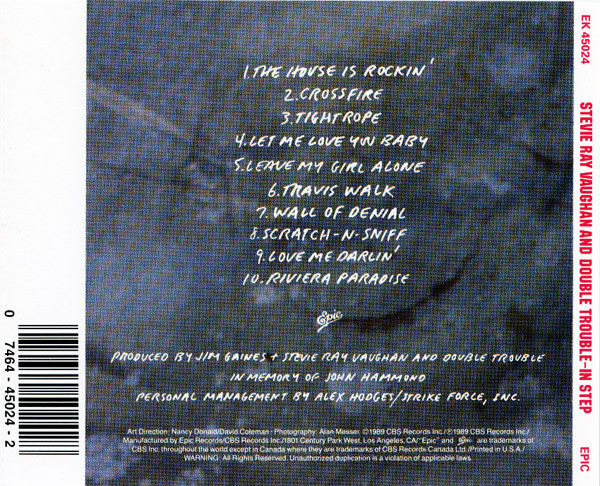 In memory of John Hammond Recorded & mixed at Kiva Studios, Memphis Sound Castle, Los Angeles. Mastered at Los Angeles ©&℗ 1989 CBS Records Inc. Manufactured by Epic Records/CBS Records, Inc. 1801 Century Park West, Los Angeles, CA.