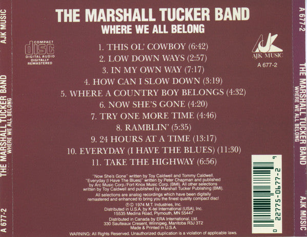 ℗ + © 1974 M.T. Industries, Inc. All selections are analog recordings which have been digitally remastered and enhanced to bring you the finest quality compact disc! Made & Printed in U.S.A Made in Canada (on cd label)