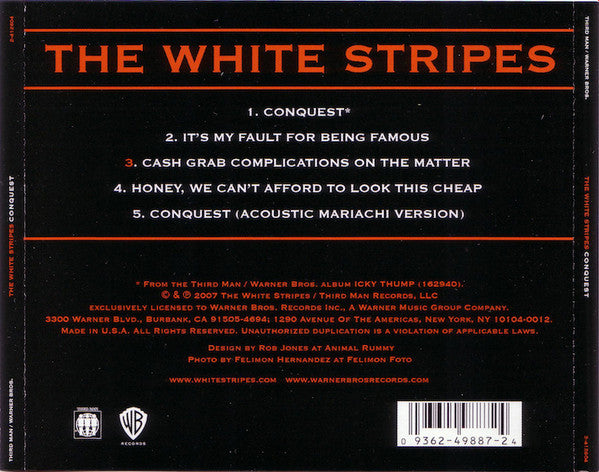 Track 1 recorded at Blackbird studio (Nashville, Tennesse, USA). Tracks 2 - 5 recorded in Beck's living room. Recorded to eight track and mastered at Soundmasters. Sold exclusively through Best Buy stores in USA. Tracks previously issued in three different 7" (XL Recordings, XLS 320 A, XLS 320 B, XLS 320 C, 2007). (C) & (P) 2007 The White Stripes / Third Man Records, LLC exclusively licensed to Warner Bros. Record Inc.