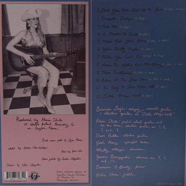 Produced by Kevin Skrla at Wolfe Island Recording Co. In Dayton, Texas Back cover photo by Lyza Renee Styled by Golden Hits Vintage Hair by Josie Cole Cover photo by Curtis Cloyston Designed by Ellie Cloyston