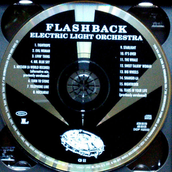 Flashback features greatest hits, personal favorites, alternative takes and previously unreleased material as well as historical photos, extensive liner notes, and personal commentary from Lynne himself. The following tracks are marked, "Previously Unreleased": 1-14, 1-16, 2-5, 2-16, 3-16 to 3-18, 3-20 to 3-21 Track 3-19 is marked, "First Time On CD" "Fatbox" Jewel case triple CD promo Black & White cover/back - no booklet or other information as is present in retail USA release Front cover, and on all 3 disc rims: "For Promotional Use Only. Not For Sale"