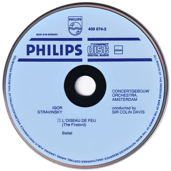 ℗ 1979 Pale blue Philips CD label. Booklet notes in English, German and French. Printed in booklet: © Phonogram International B.V., Baarn - The Netherlands Manufactured by Polygram in Hanover, West Germany 400 074-2 Printed in West Germany Printed on disc face: 400 074-2 MADE IN W-GERMANY GEMA Printed on tray card: 3 259140007425 400 074 2 © Phonogram International B.V. · Printed in West Germany Made in West Germany Jewel case with smooth edges and patent pending relief.