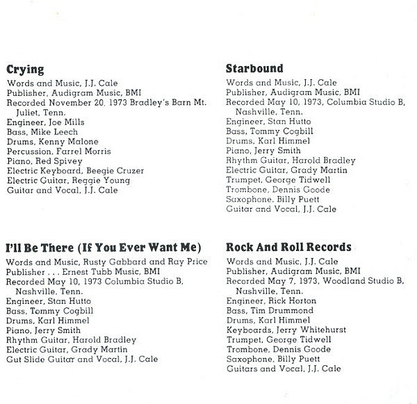 Recorded October 4, 1973, Cale’s House, Tulsa, Oklahoma [9