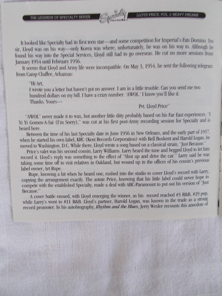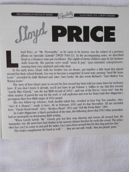 Lloyd Price : Lloyd Price Vol. 2 : Heavy Dreams (CD, Comp)