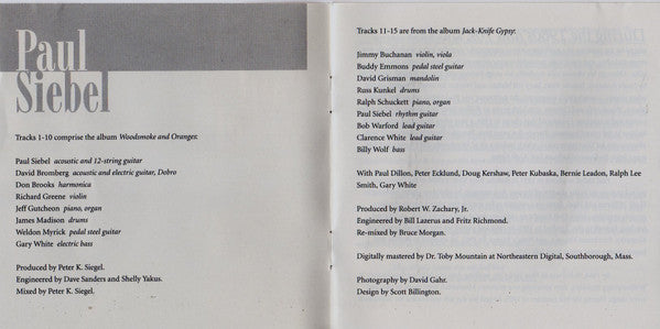 Tracks 1-10 comprise the 457792 album released in 1970. Tracks 11-15 are from the 457793 album released in 1971. Additional credits for tracks 11-15: With Paul Dillon, Peter Ecklund, Doug Kershaw, Peter Kubuska, Bernie Leadon, Ralph Lee Smith, Gary White