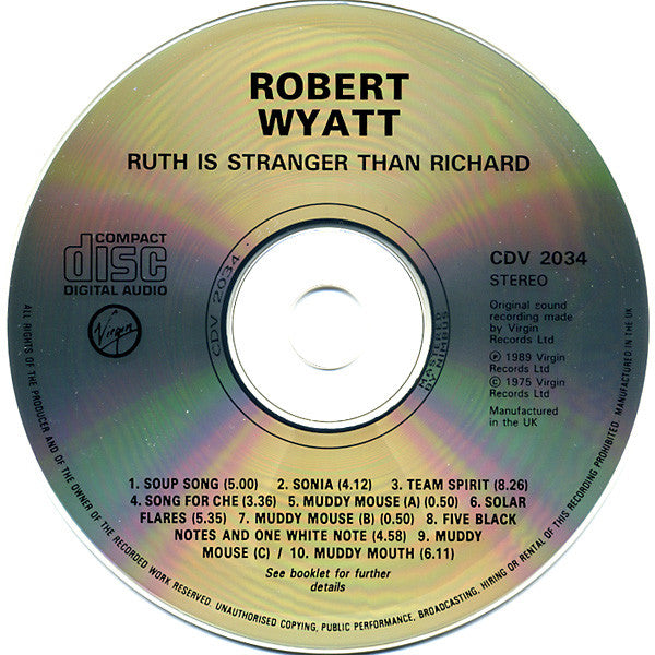 Manufactured in the UK Original sound recording made by Virgin Records Ltd ℗ 1989 Virgin Records Ltd © 1975 Virgin Records Ltd Published by Virgin Music (Publishers) Ltd. Except: 2. Cadillac Music Ltd., 3. E.G. Music/Virgin Music (Publishers) Ltd. 4. Liberation Music Co. Tracklist on rear cover, booklet & disc indicates 10 tracks, CD has 9 tracks as 9 & 10 are merged in one track. Released in standard jewel case, including a 4-page folded insert with credited and timed tracklist, artwork, and credits.