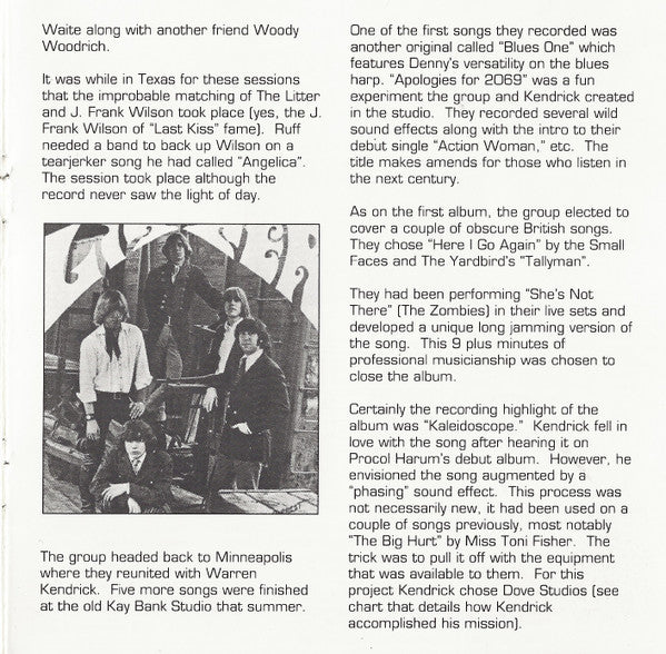 Reissue of 1968 album. Track 5 is a previously unreleased bonus track. Tracks 1 to 4 and 6 to 10 recorded at Dove Recording Studios, Minneapolis, MN. Track 5 recorded at Electric Theatre, Chicago , IL. All selections except 'Mindbreaker' are analog recordings which have been digitally remastered from the original master tapes. 'Mindbreaker' was mastered from a vinyl source. (Although not credited above, 'Apologies To 2069' is also dubbed from a vinyl source.)