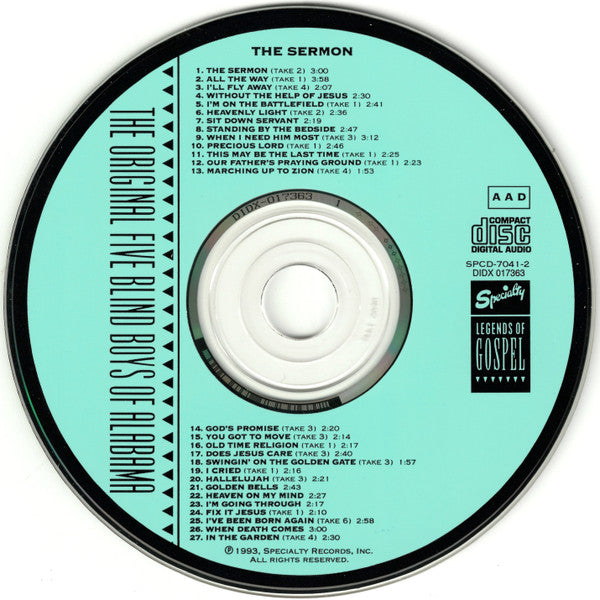 Recordings from 1952 to 1957. ℗ & © 1993, Specialty Records, Inc. Printed in the USA. Standard jewel case, black tray, foldout front insert. Issued in 1994 or later, since CD has an SID code.